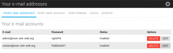 In the pop-up window that opens you will choose the email address. You will choose what appears before the "@". Authorized characters are letters and numbers as well as hyphens"-". You cannot use special characters not spaces in the email address.